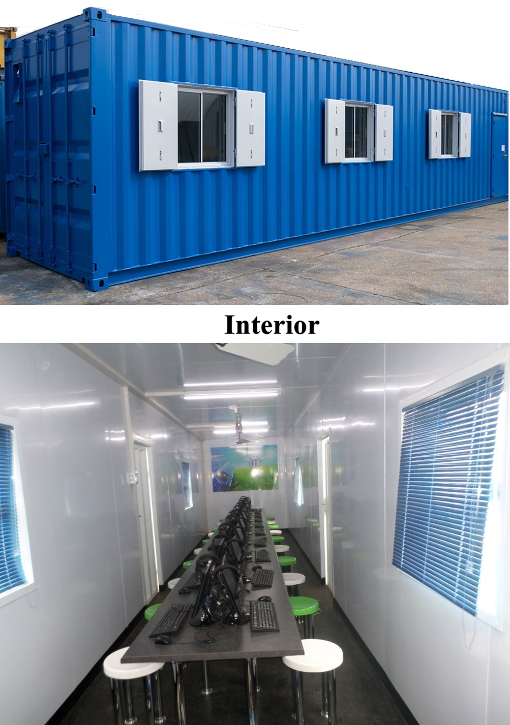 Containers can be modified with windows, doors, insulation, plumbing, and interiors to suit any purpose.